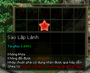 - Cần 1 Thần Kỳ Thạch + 1 Kim Nguyên Bảo ( Tiểu ) để ghép được 1 Sao Lấp Lánh