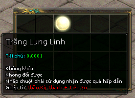 - Cần 1 Thần Kỳ Thạch + 1 Tiền Xu để ghép được 1 Trăng Lung Linh
