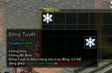 Lưu ý : Cần 10 Bông Tuyết + 1 Kim Nguyên Bảo ( Tiểu ) để ghép thành 1 Người Tuyết Xanh và cần 5 ô trống để ghép