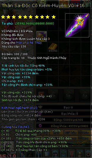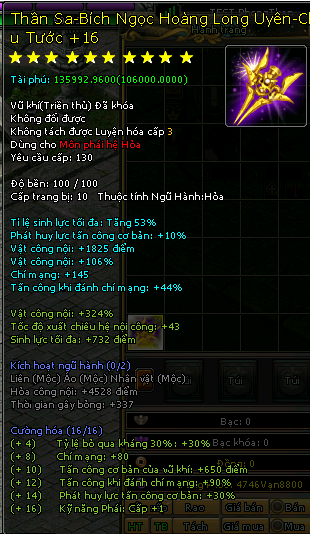 + Nâng cấp thêm 2 dòng : dòng 5 và dòng 6 của vũ khí thần sa