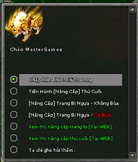 Đối Thoại NPC nâng cấp chọn : Cường Hóa Thần Thú Du Long |